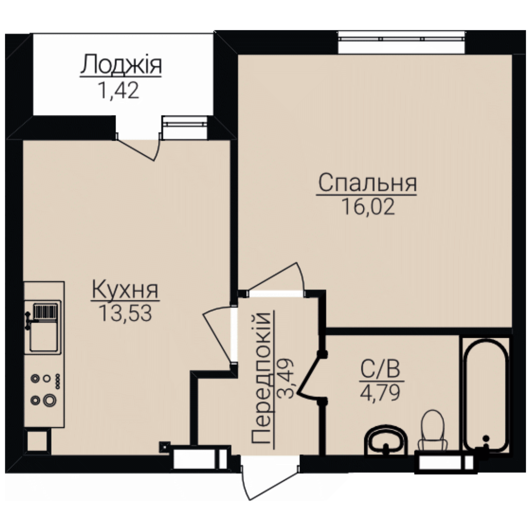 Главная / Квартиры / Однокомнатные апартаменты 1/В2