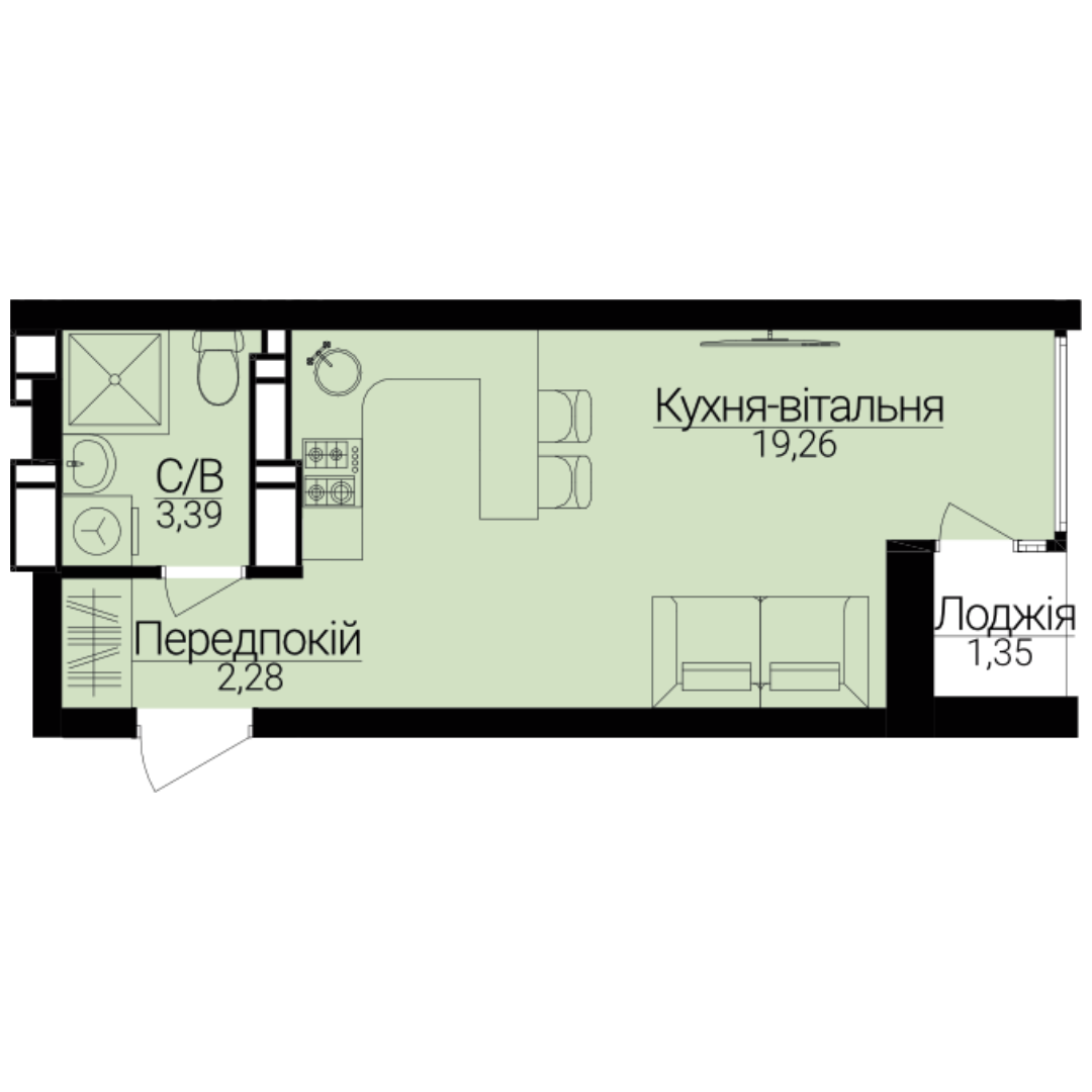 Главная / Квартиры / Однокомнатные апартаменты С-3