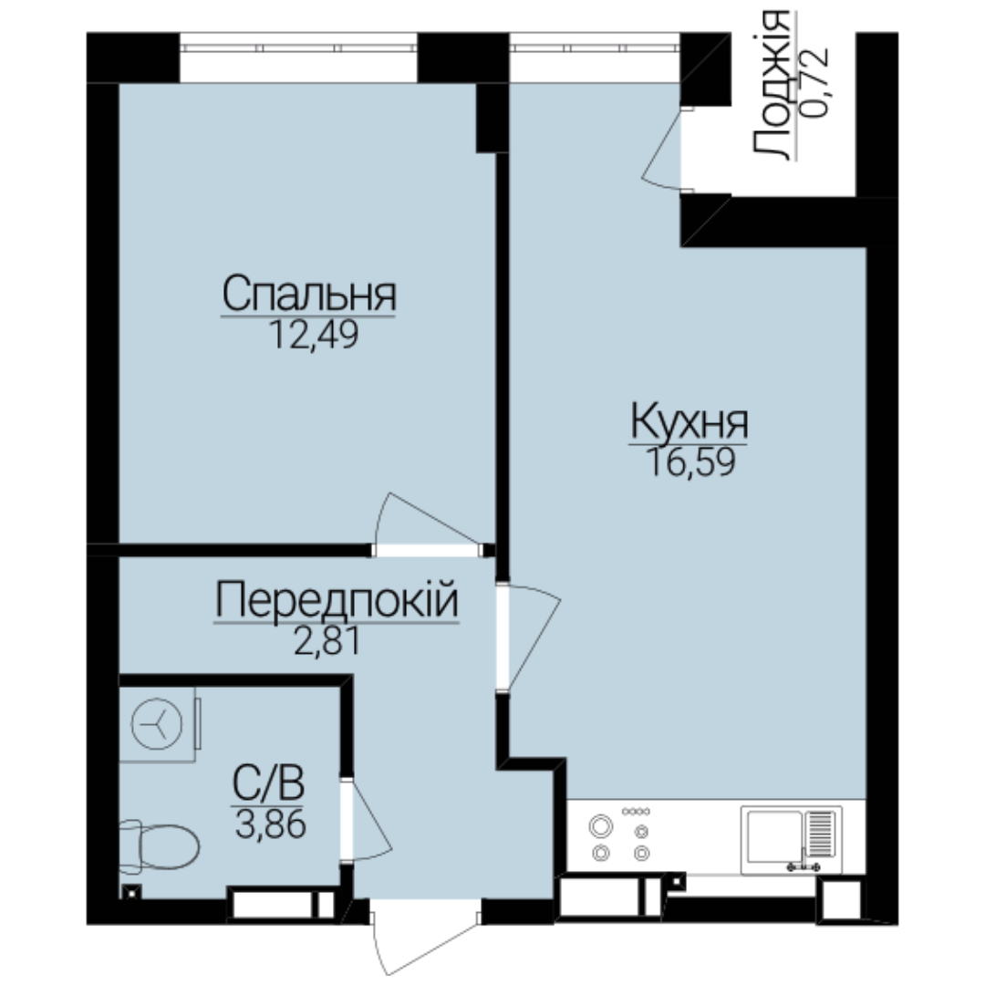 Головна / Квартири / Однокімнатні апартаменти 1В