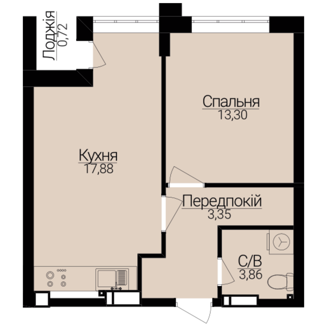 • Кухня-вітальня 17,88