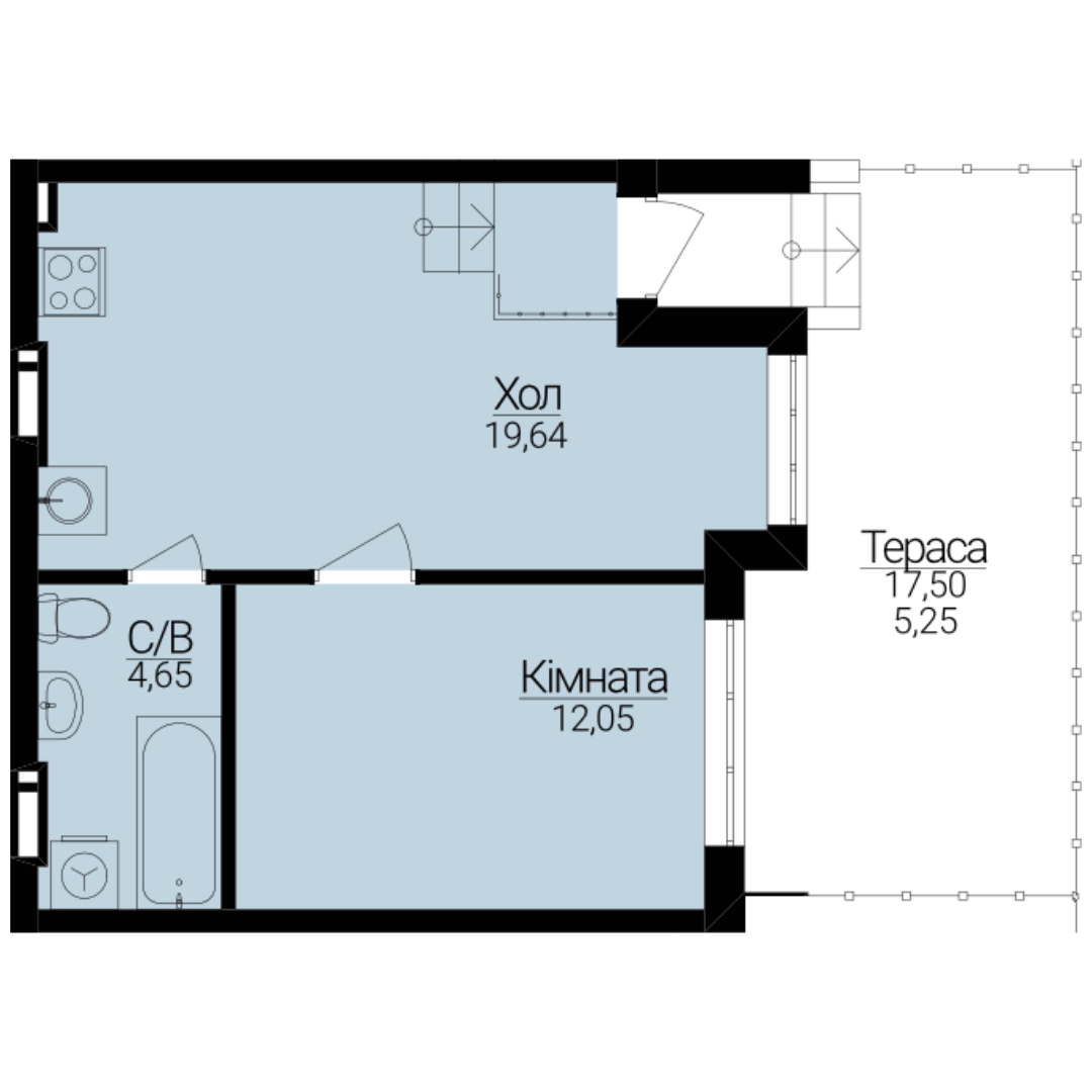 Однокімнатні апартаменти 1Ц/Д