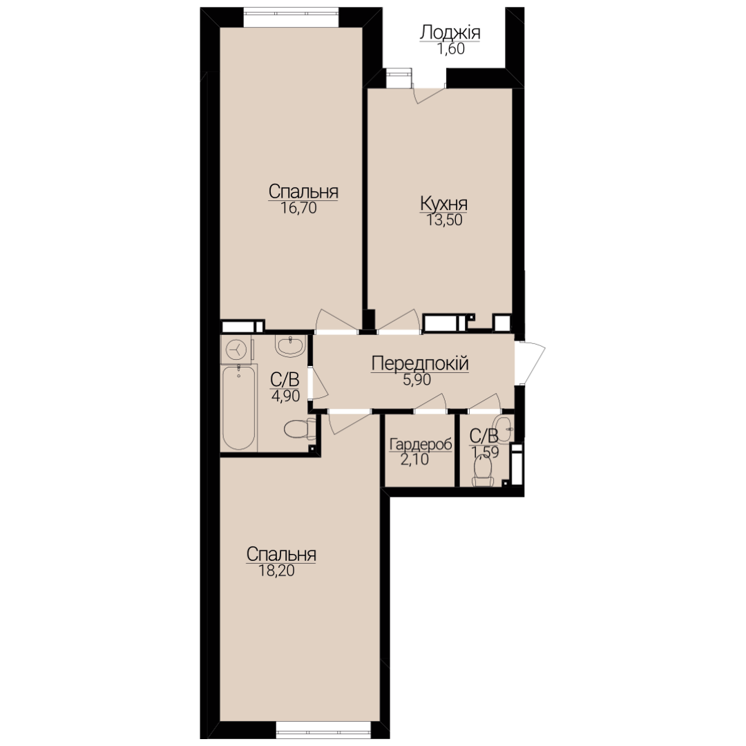 Головна / Квартири / Двокімнатні апартаменти 2Д