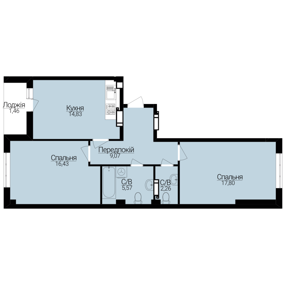 Головна / Квартири / Двокімнатні апартаменти 2В