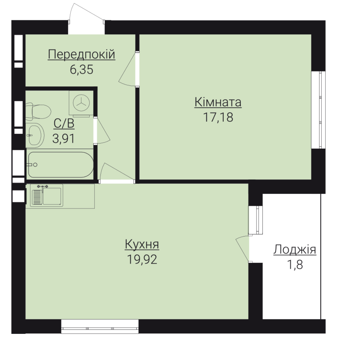Головна / Квартири / Однокімнатні апартаменти 1А
