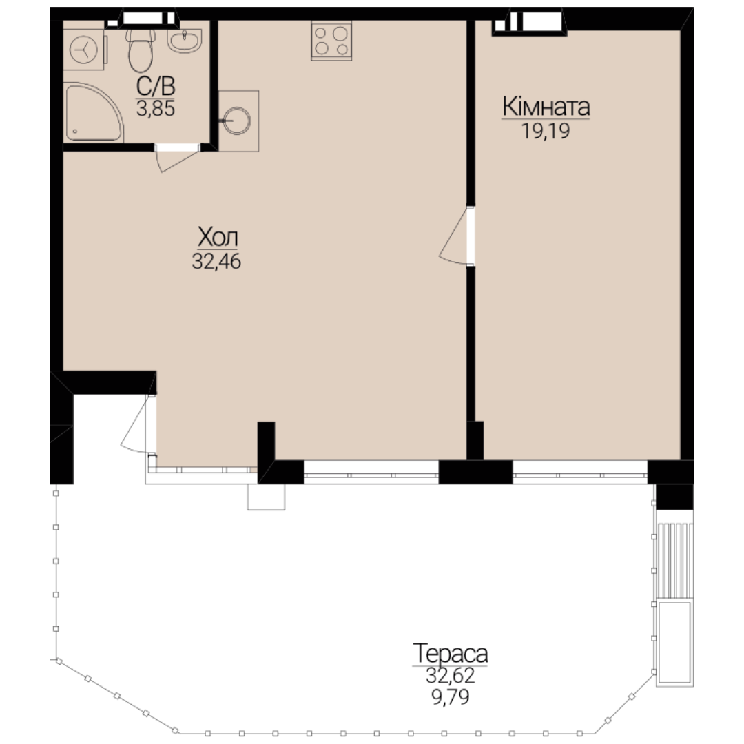 Однокімнатні апартаменти 1А/С