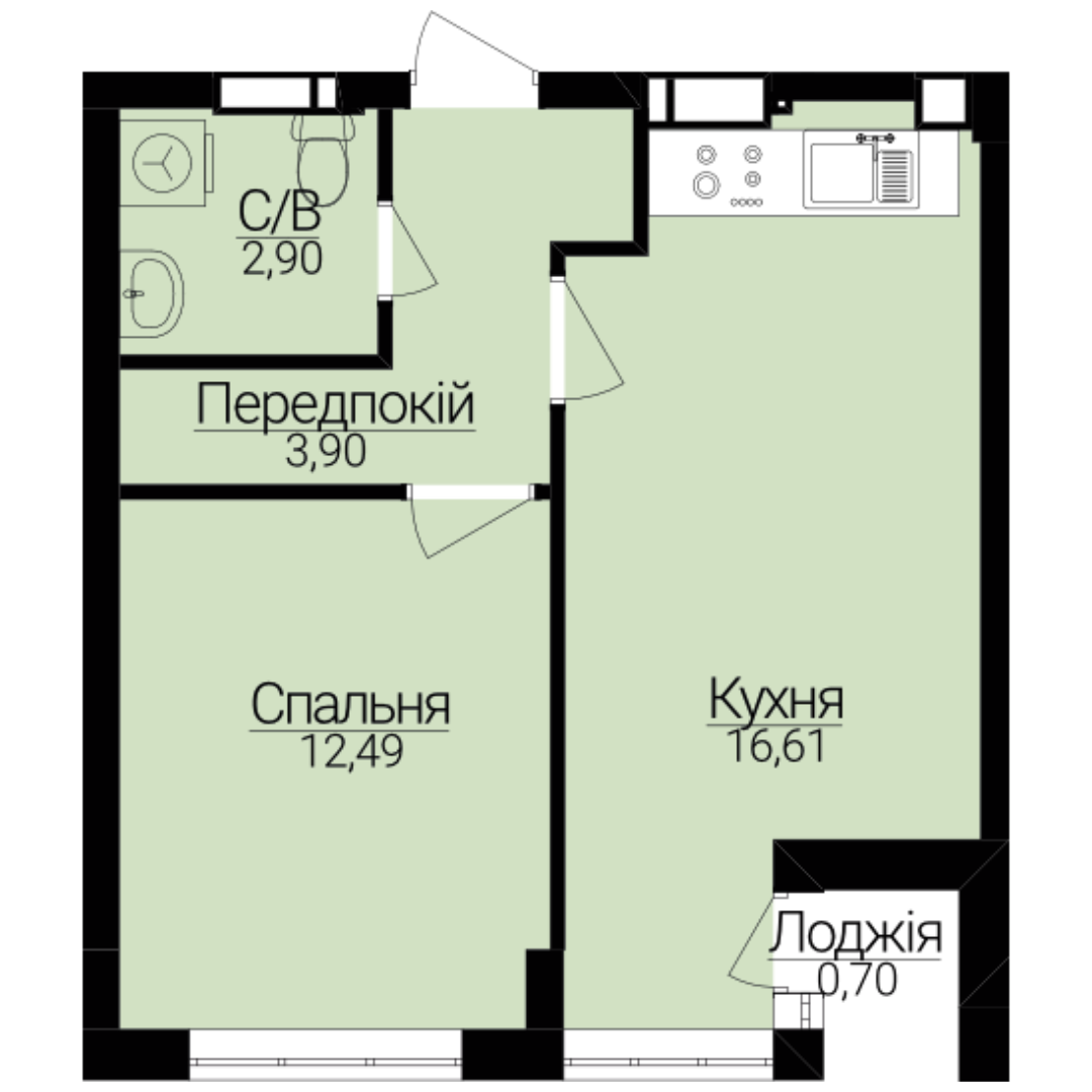 Головна / Квартири / Однокімнатні апартаменти 1В