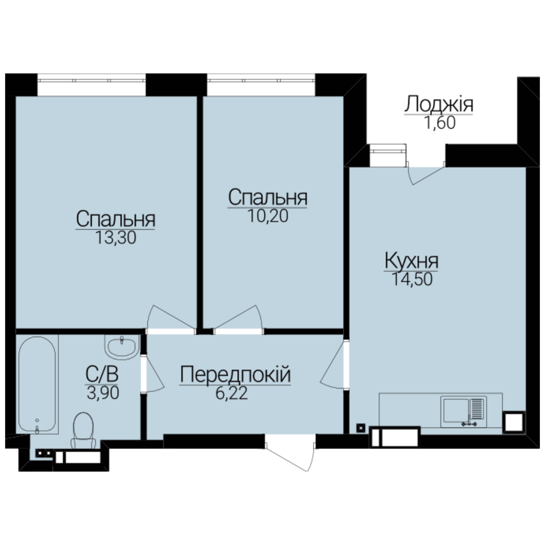 Головна / Квартири / Двокімнатні апартаменти 2А