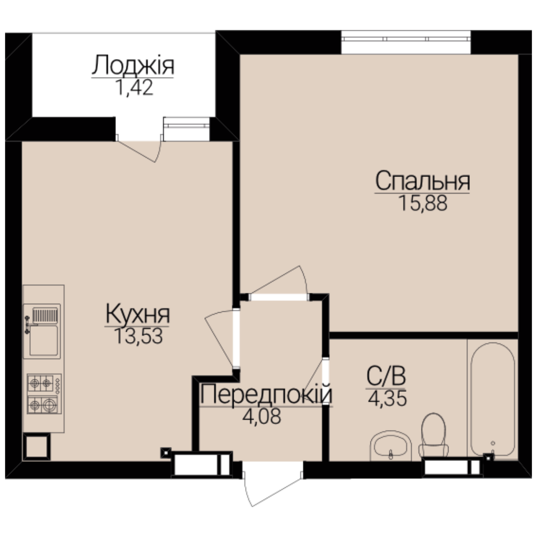 Однокімнатні апартаменти 1В/2