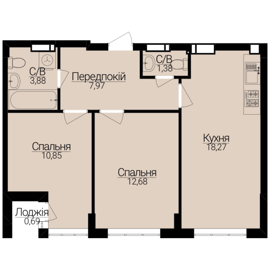 Двокімнатні апартаменти 2Е