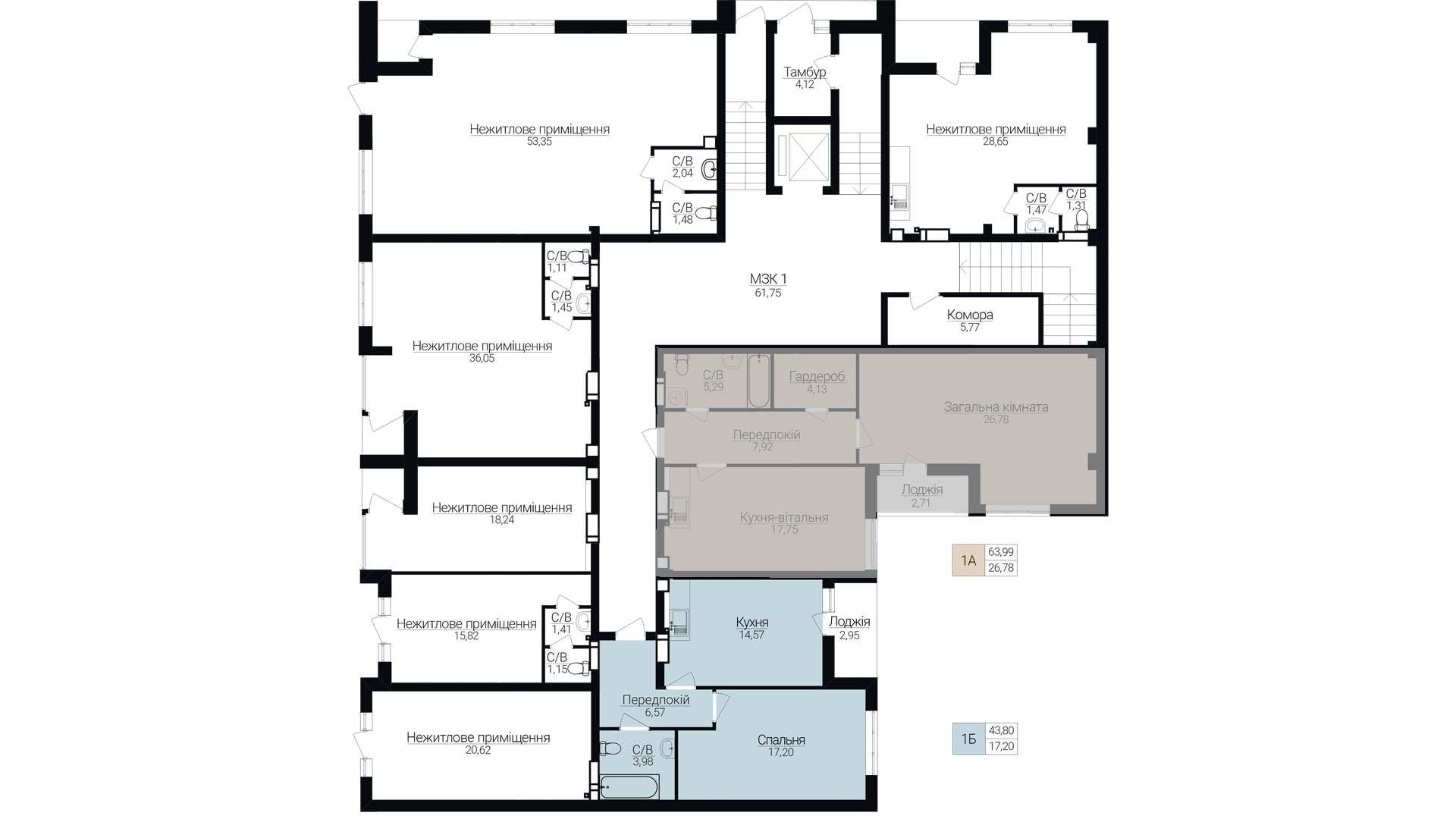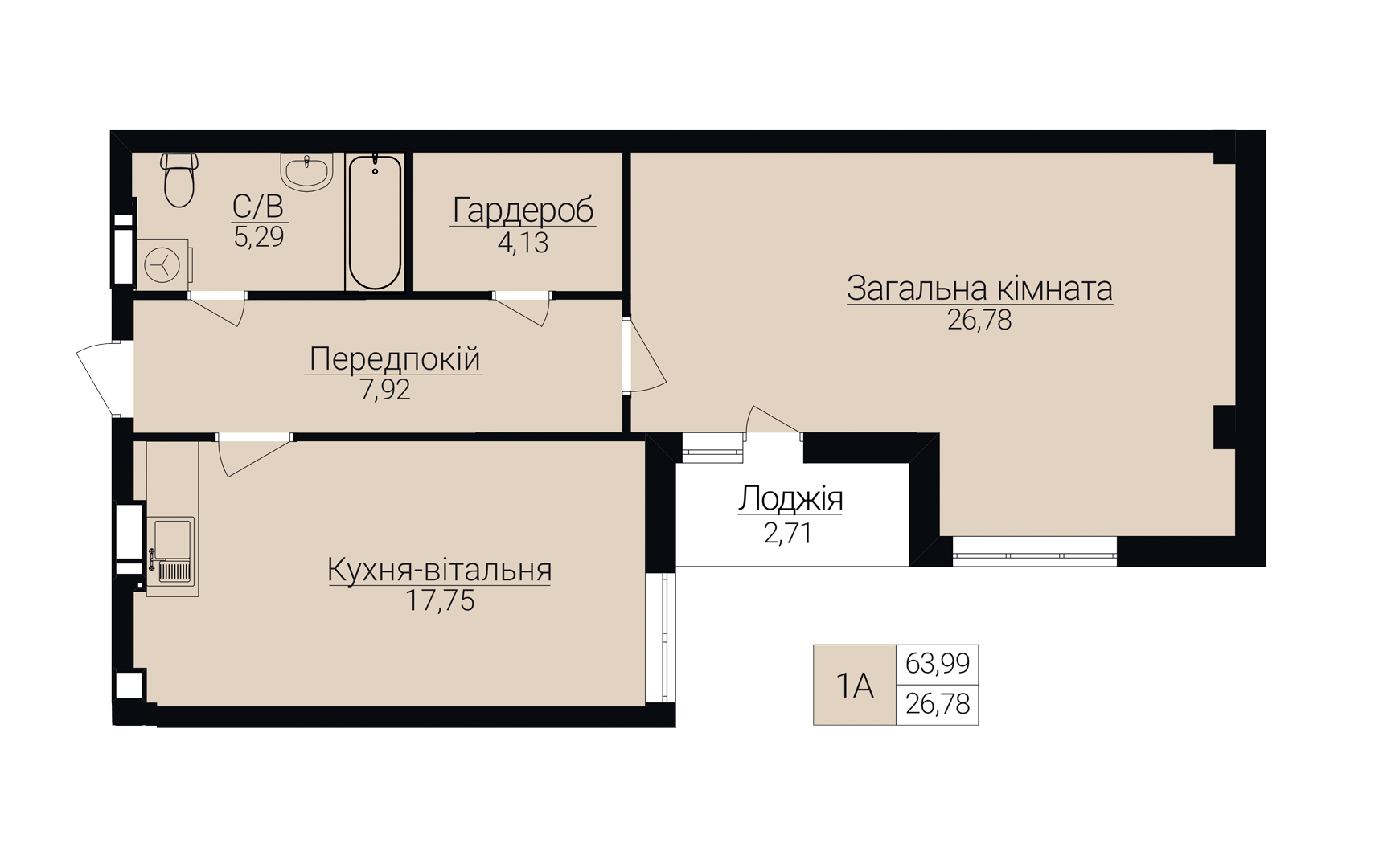 Головна / Квартири / Однокімнатні апартаменти 1А