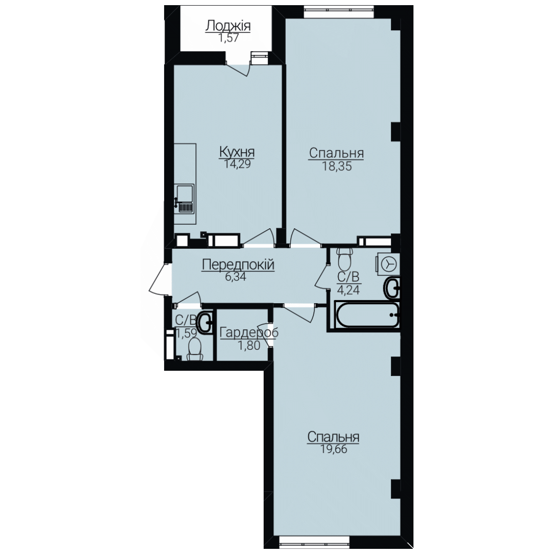 Головна / Квартири / Двокімнатні апартаменти 2Д