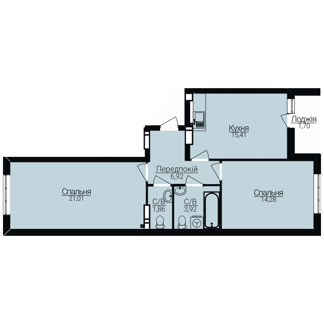 Двокімнатні апартаменти 2В
