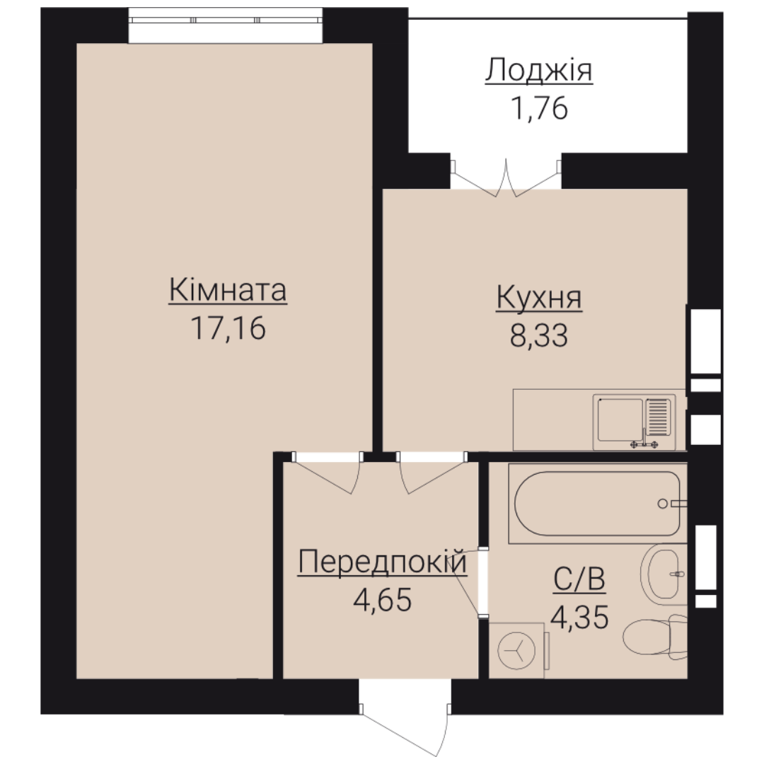 Головна / Квартири / Однокімнатні апартаменти 1Д