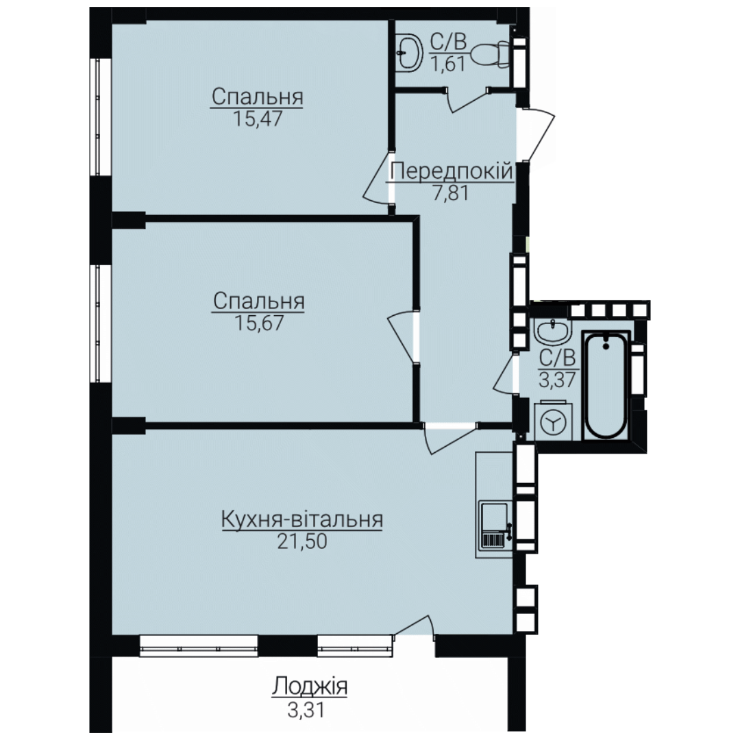 Двокімнатні апартаменти 2Б