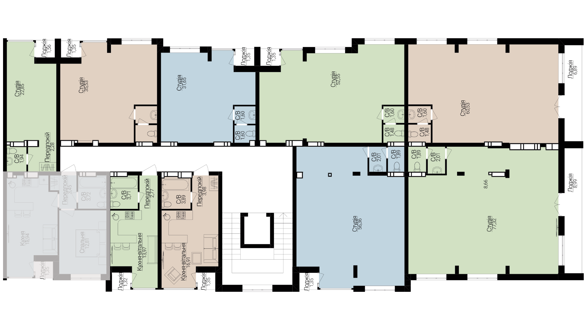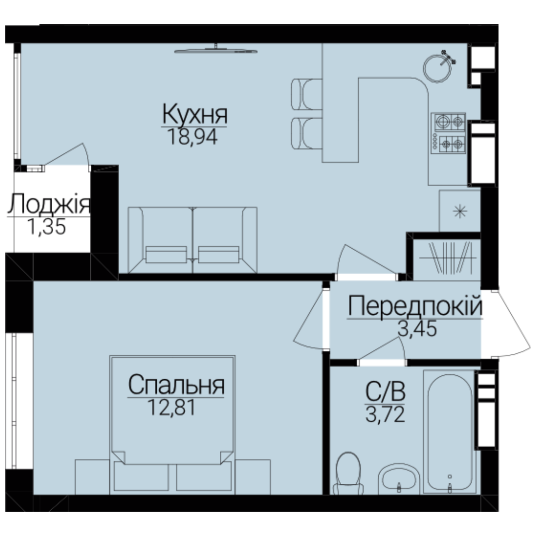 Головна / Квартири / Однокімнатні апартаменти 1Б