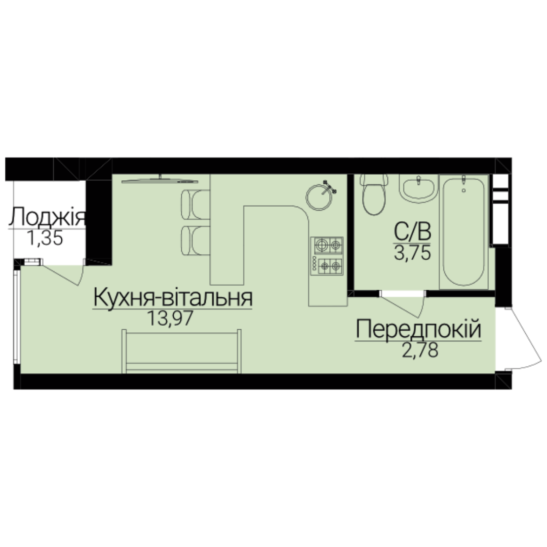 Головна / Квартири / Однокімнатні апартаменти С-1