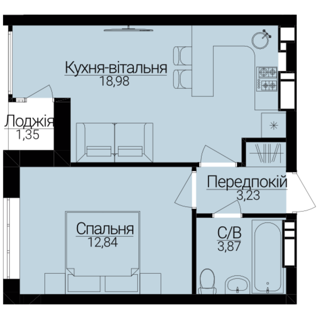 • Кухня-вітальня 18,98