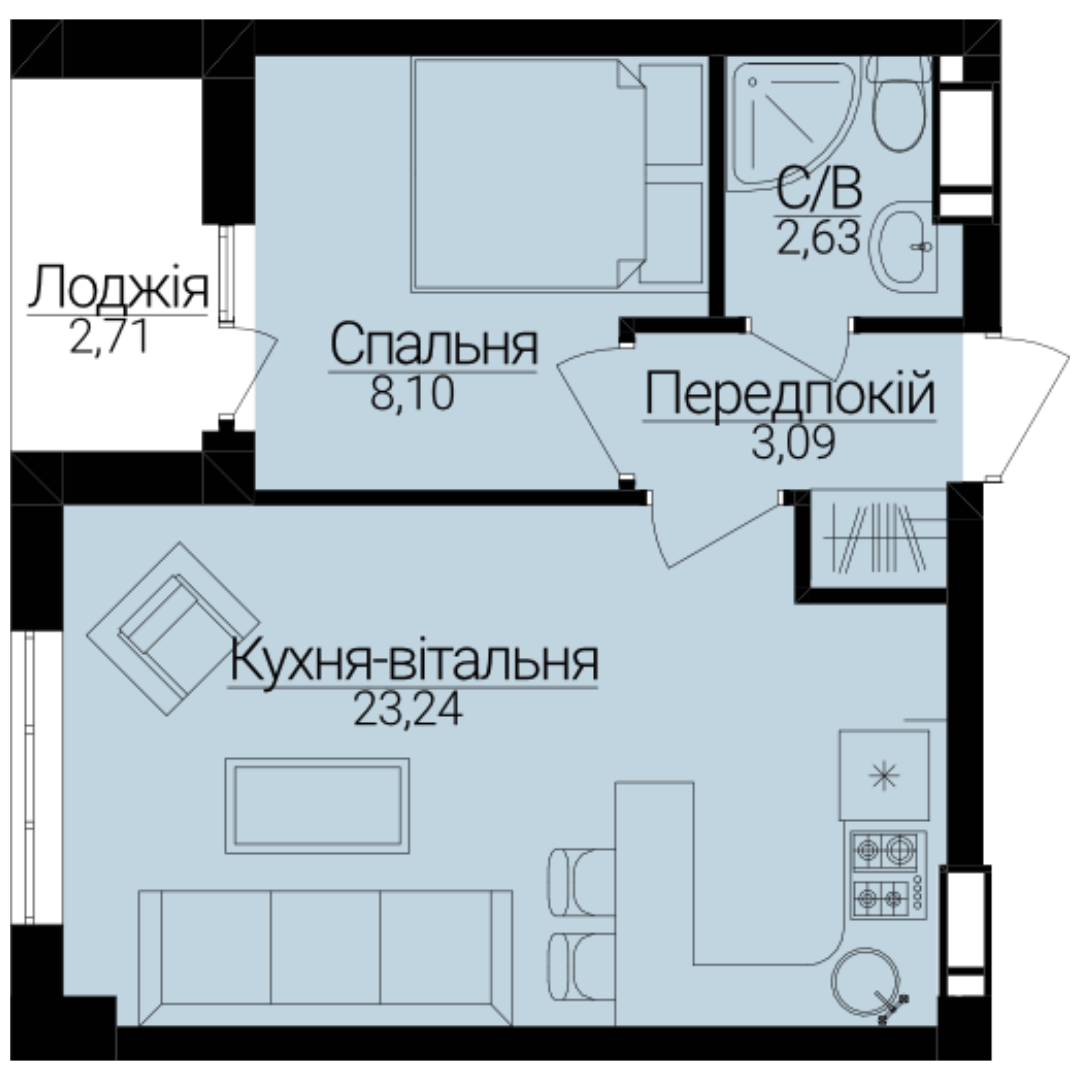 Головна / Квартири / Однокімнатні апартаменти 1Є
