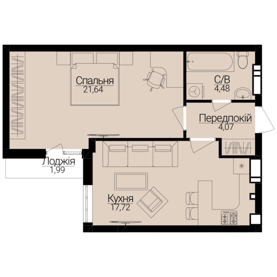 Головна / Квартири / Однокімнатні апартаменти 1Ж