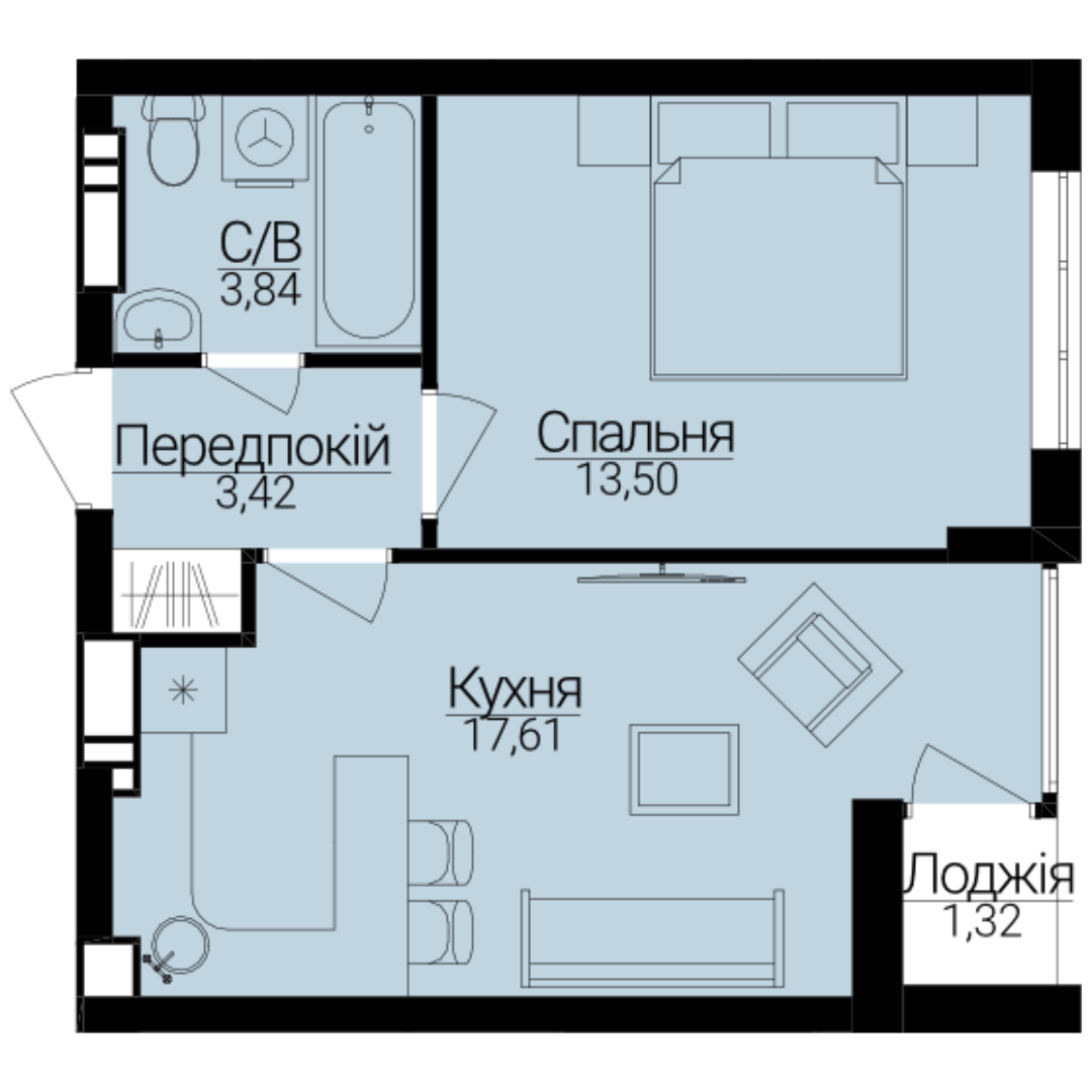 Головна / Квартири / Однокімнатні апартаменти 1Д