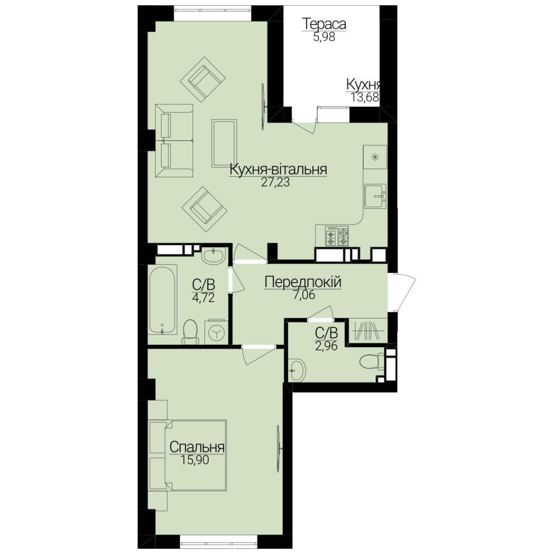 Однокімнатні апартаменти 2Д/М