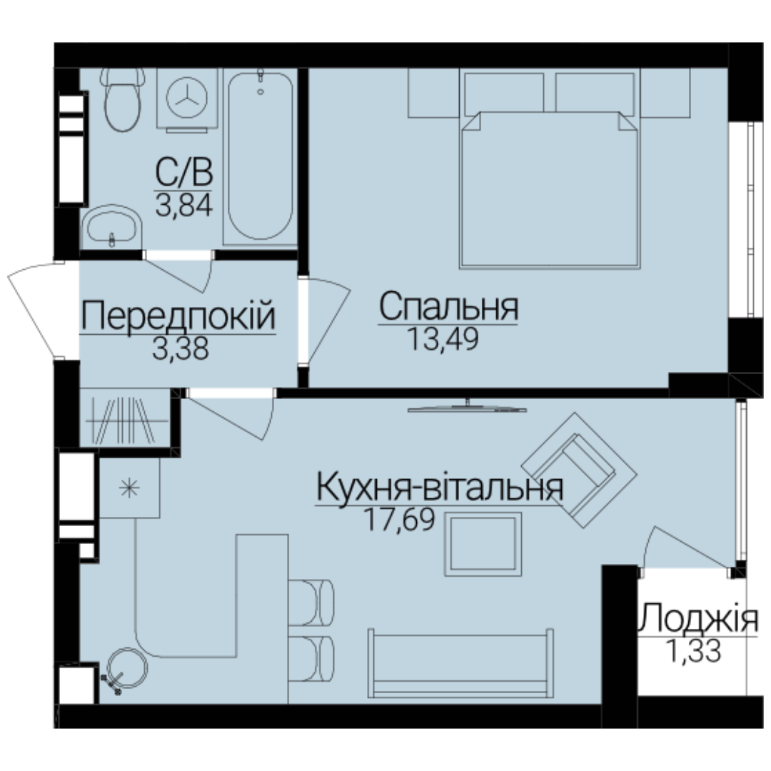 Однокімнатні апартаменти 1Д/М