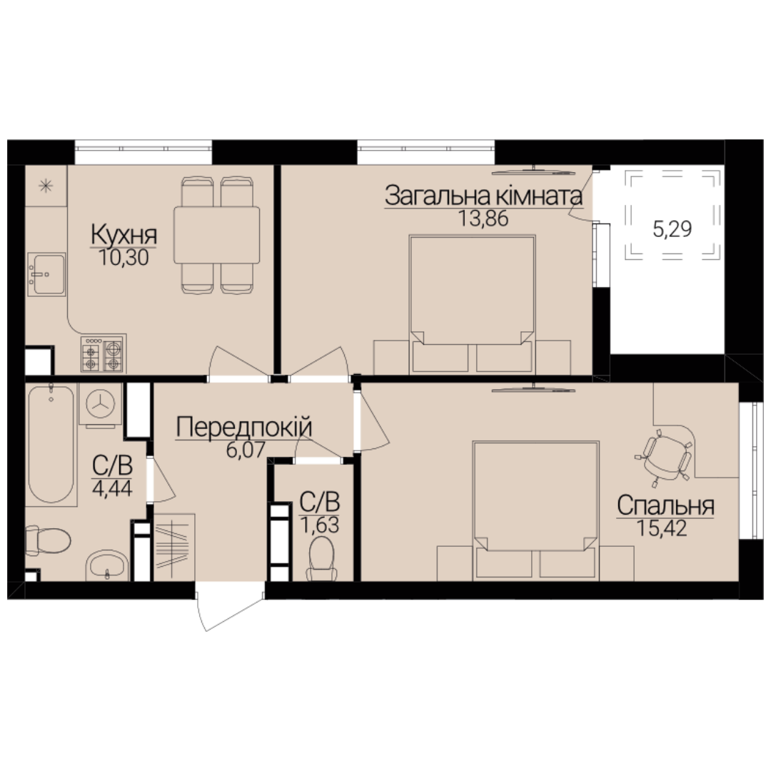 Головна / Квартири / Двокімнатні апартаменти 2Г/М