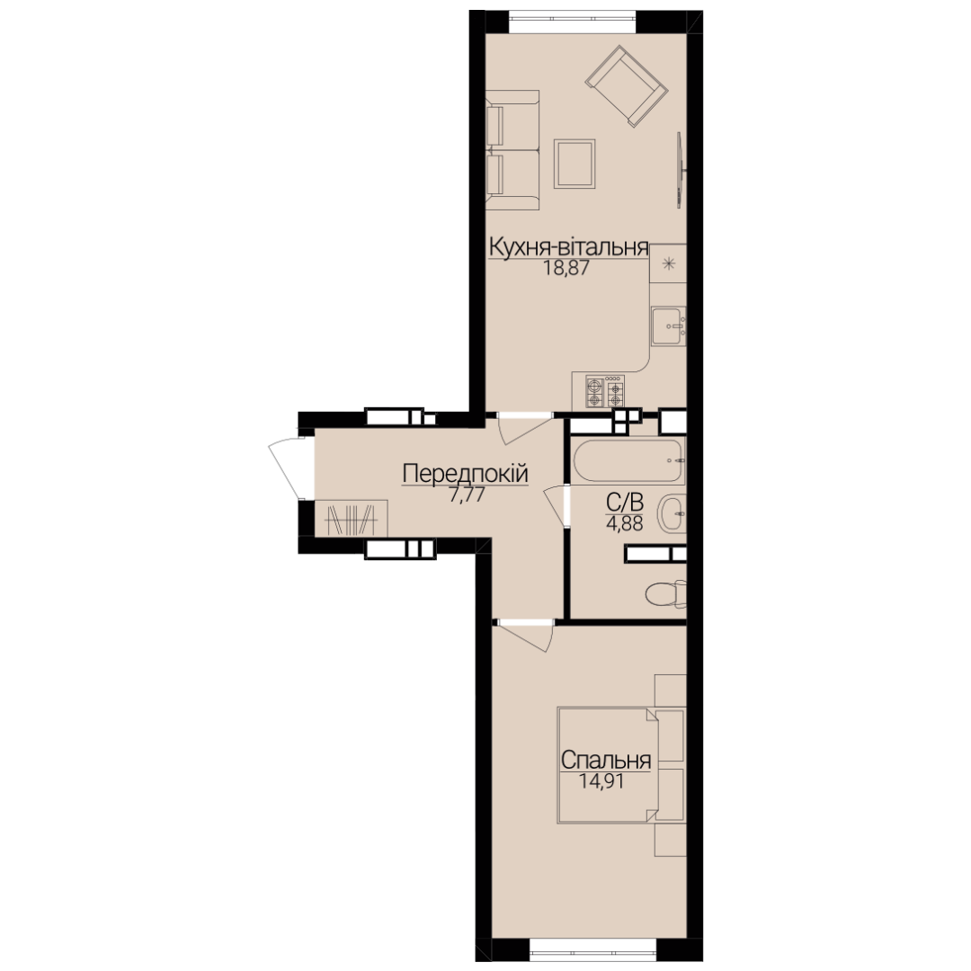 Однокімнатні апартаменти 1К