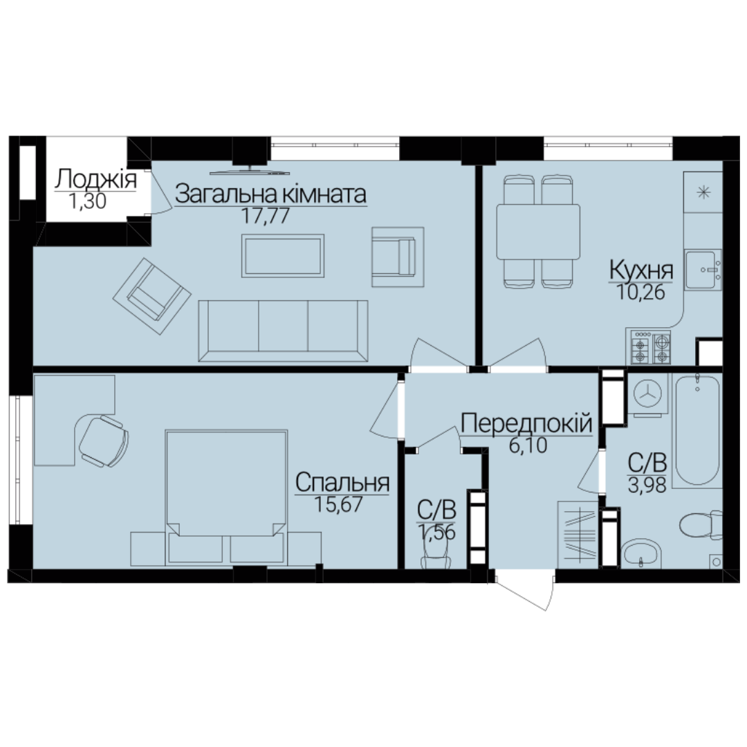 Двокімнатні апартаменти 2А