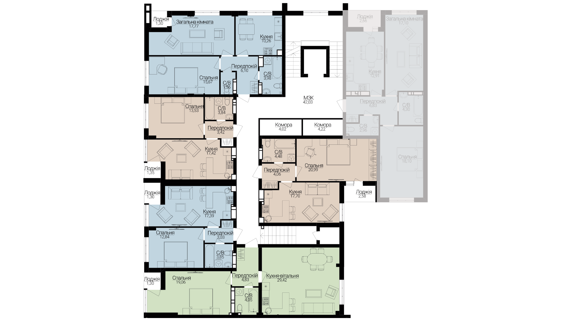 Однокімнатні апартаменти С-2