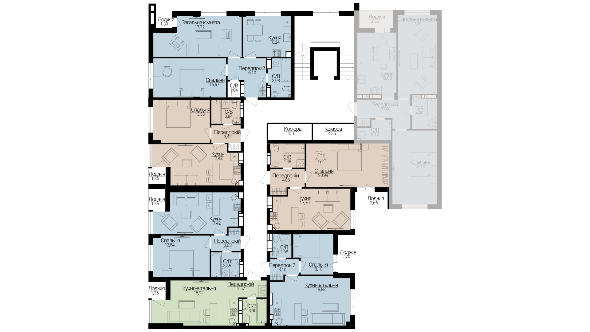 Однокімнатні апартаменти С-4