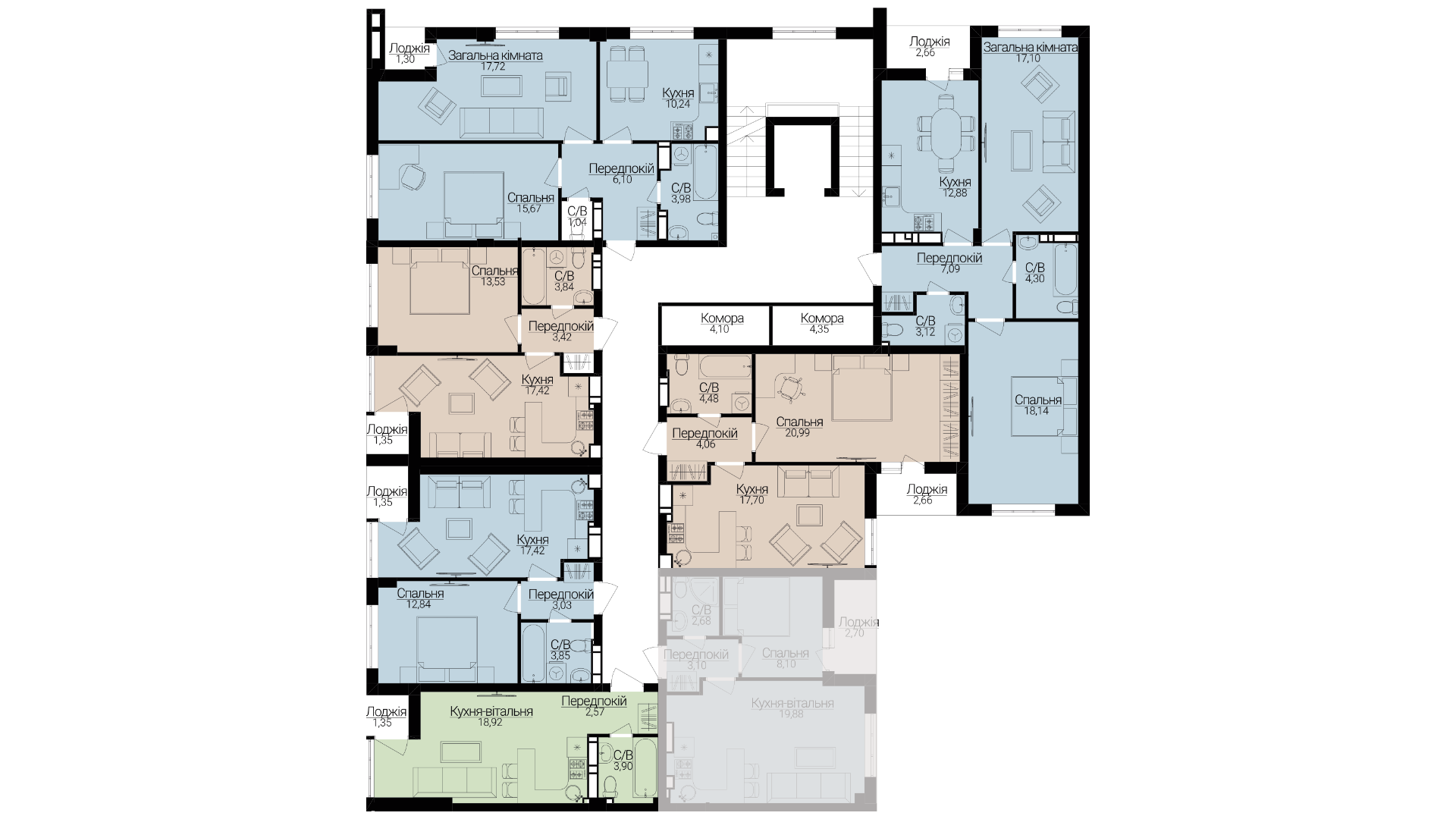 Однокімнатні апартаменти С-1