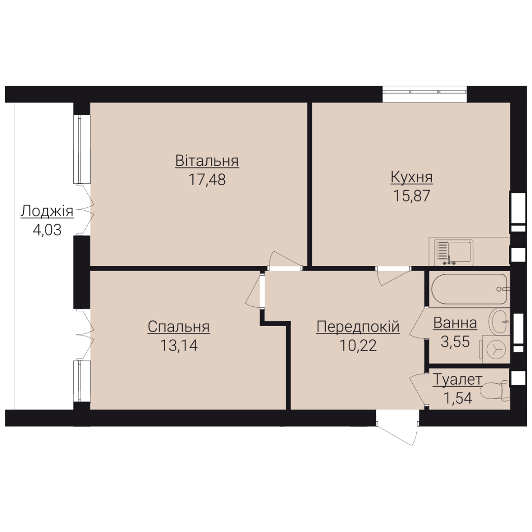 Двокімнатні апартаменти 2В