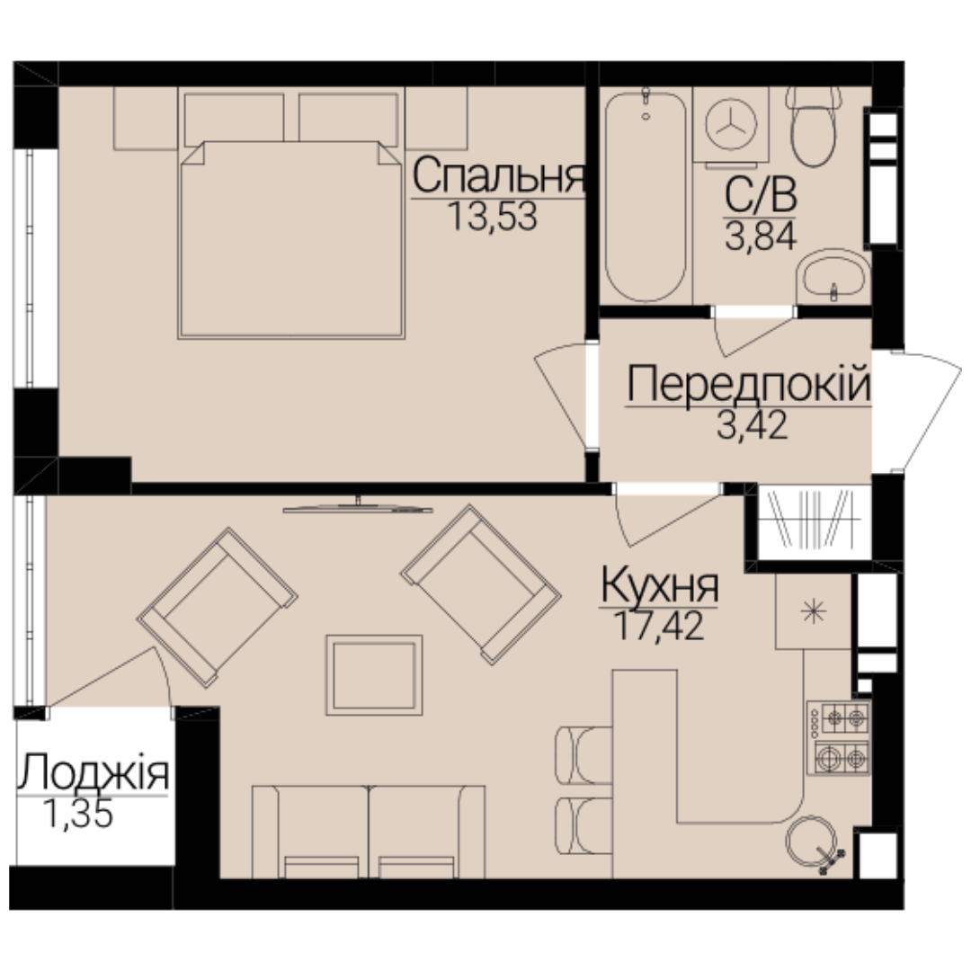 Однокімнатні апартаменти С-3