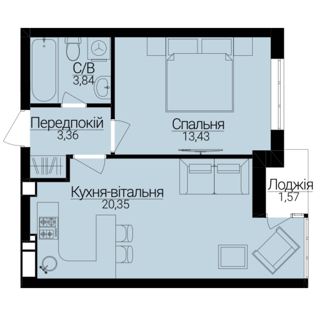 Однокімнатні апартаменти С-3