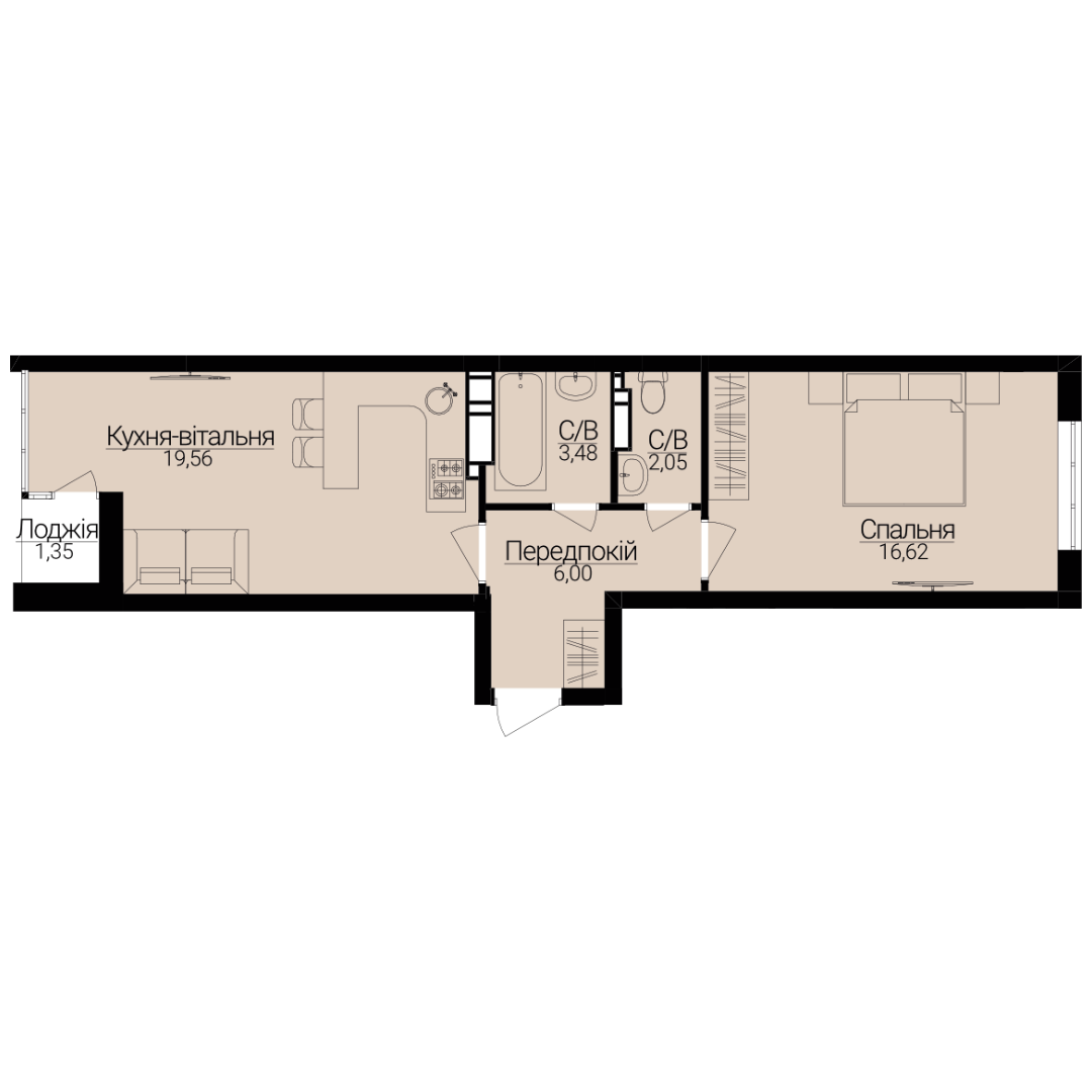 Однокімнатні апартаменти 1В