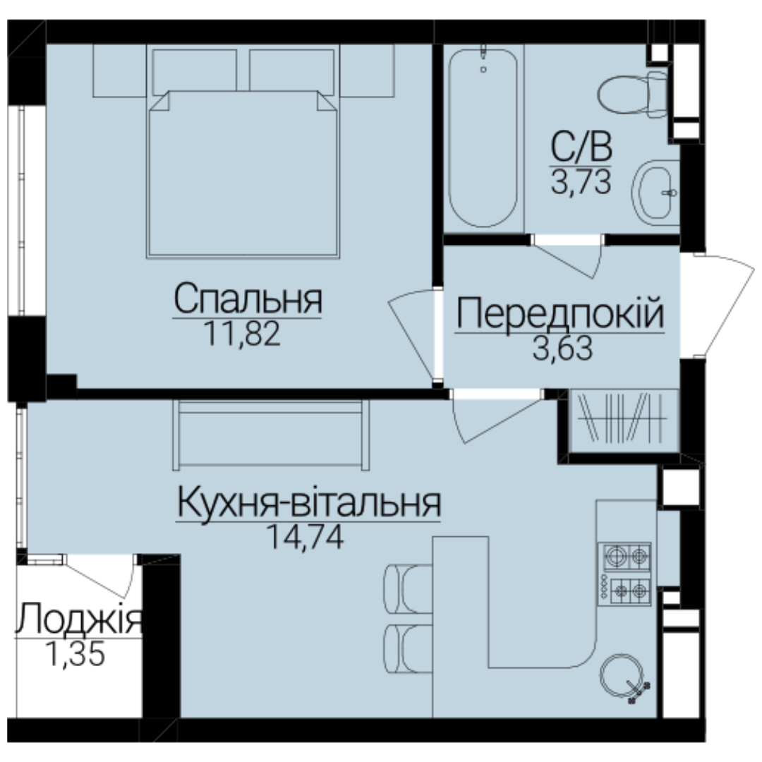 Однокімнатні апартаменти С-1