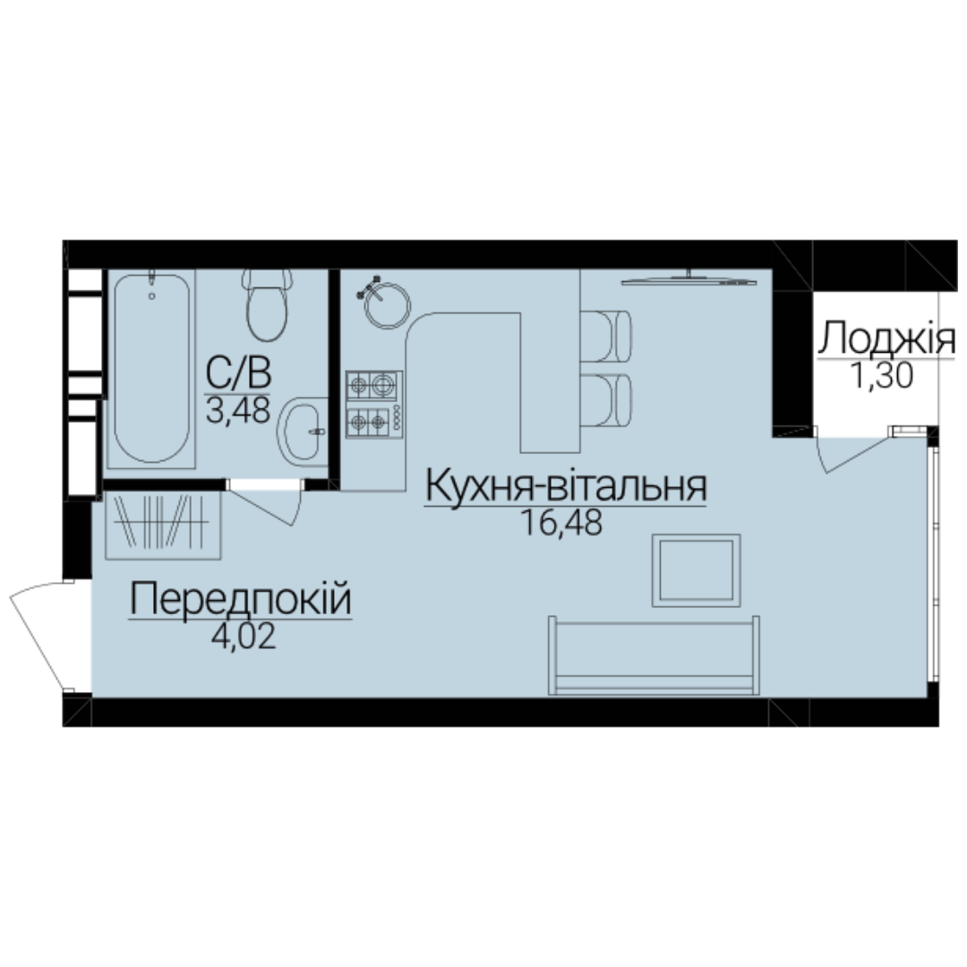Однокімнатні апартаменти 1Є