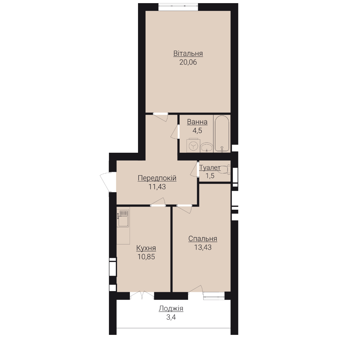 Головна / Квартири / Двокімнатні апартаменти 2Д