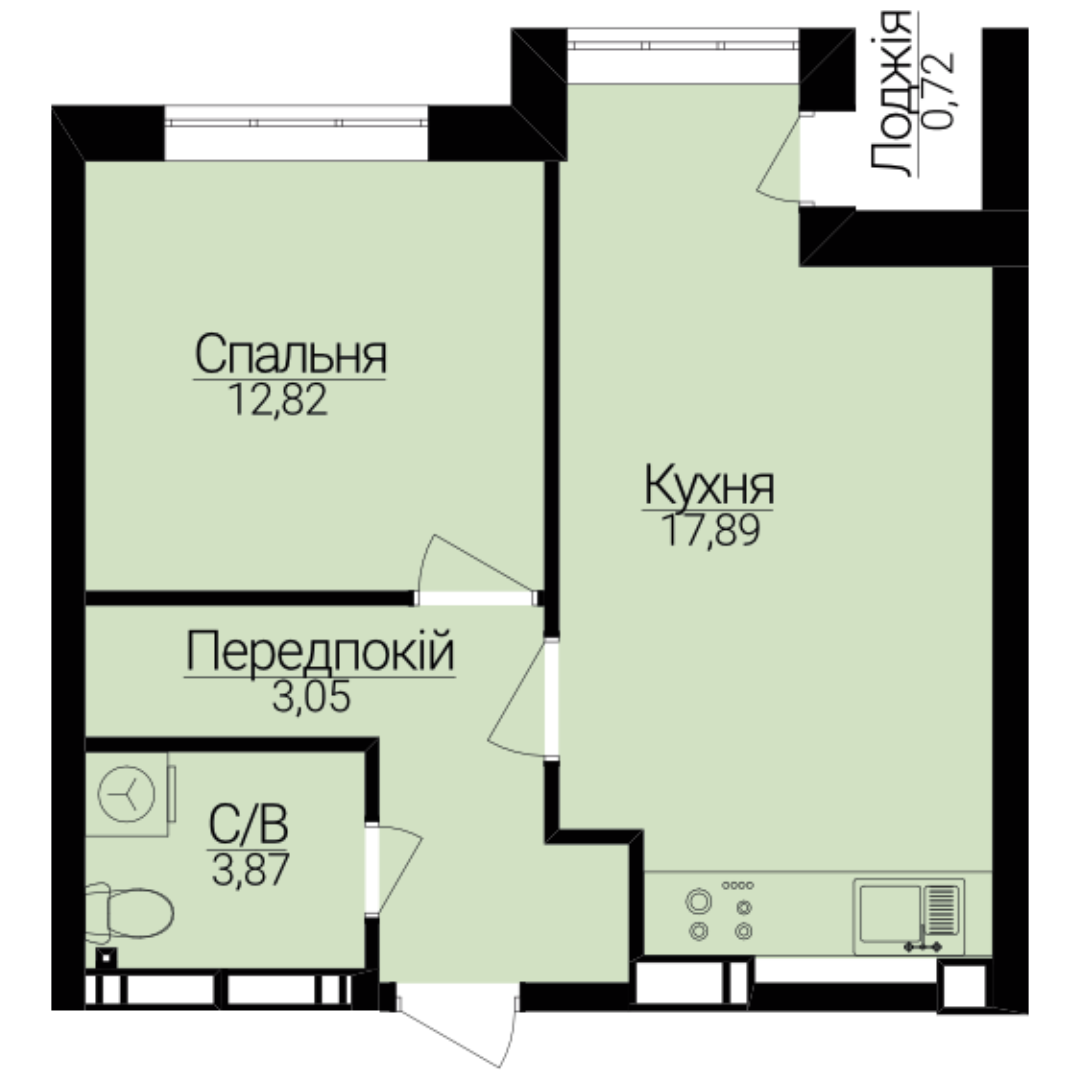 Головна / Квартири / Однокімнатні апартаменти 1Б
